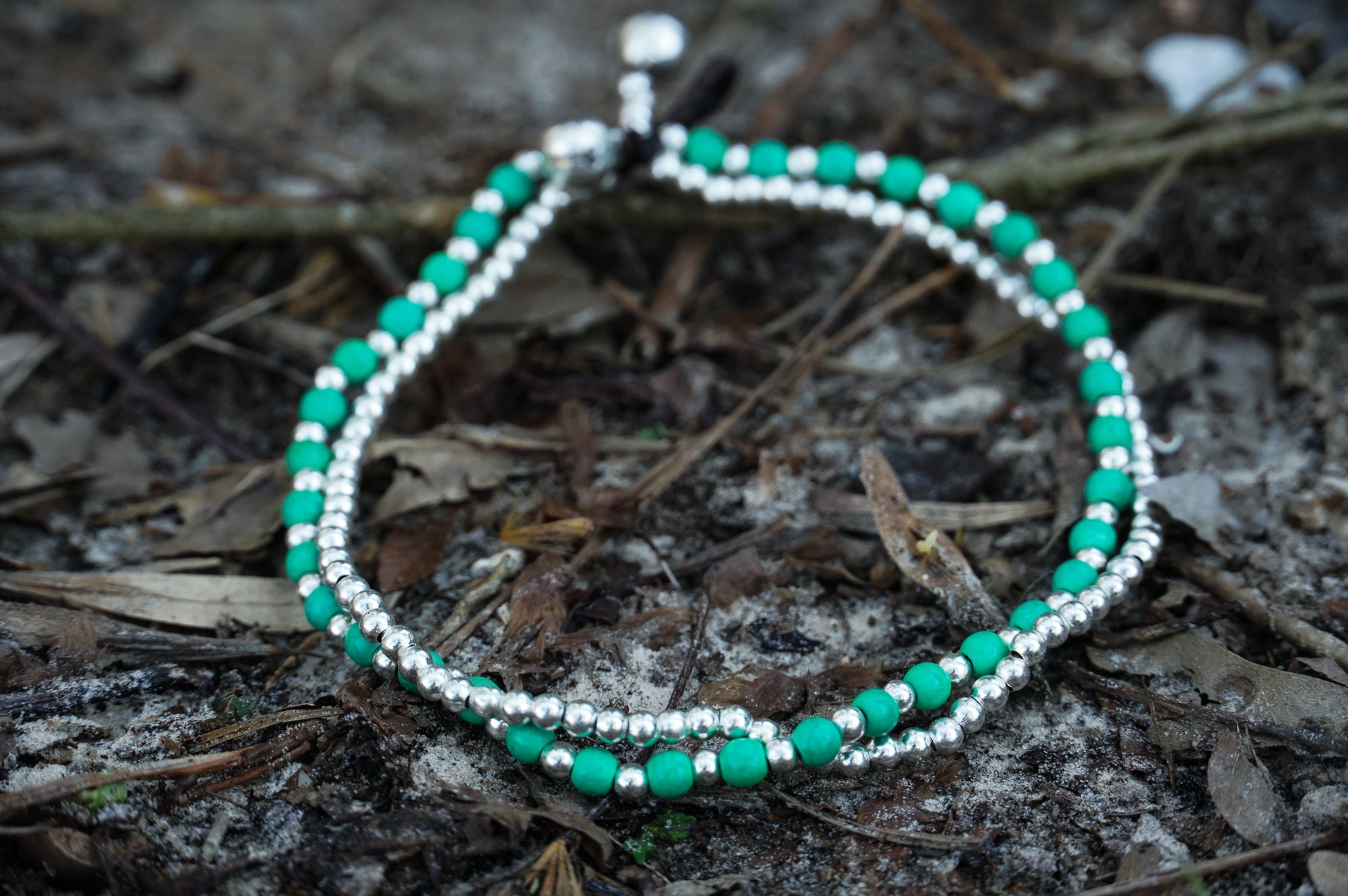 Embrace the vibrancy of nature with this handmade double-strand boho bracelet, crafted with lush green stones and shimmering silver beads. This bracelet symbolizes growth, renewal, and inner peace, making it a perfect piece for free-spirited souls.