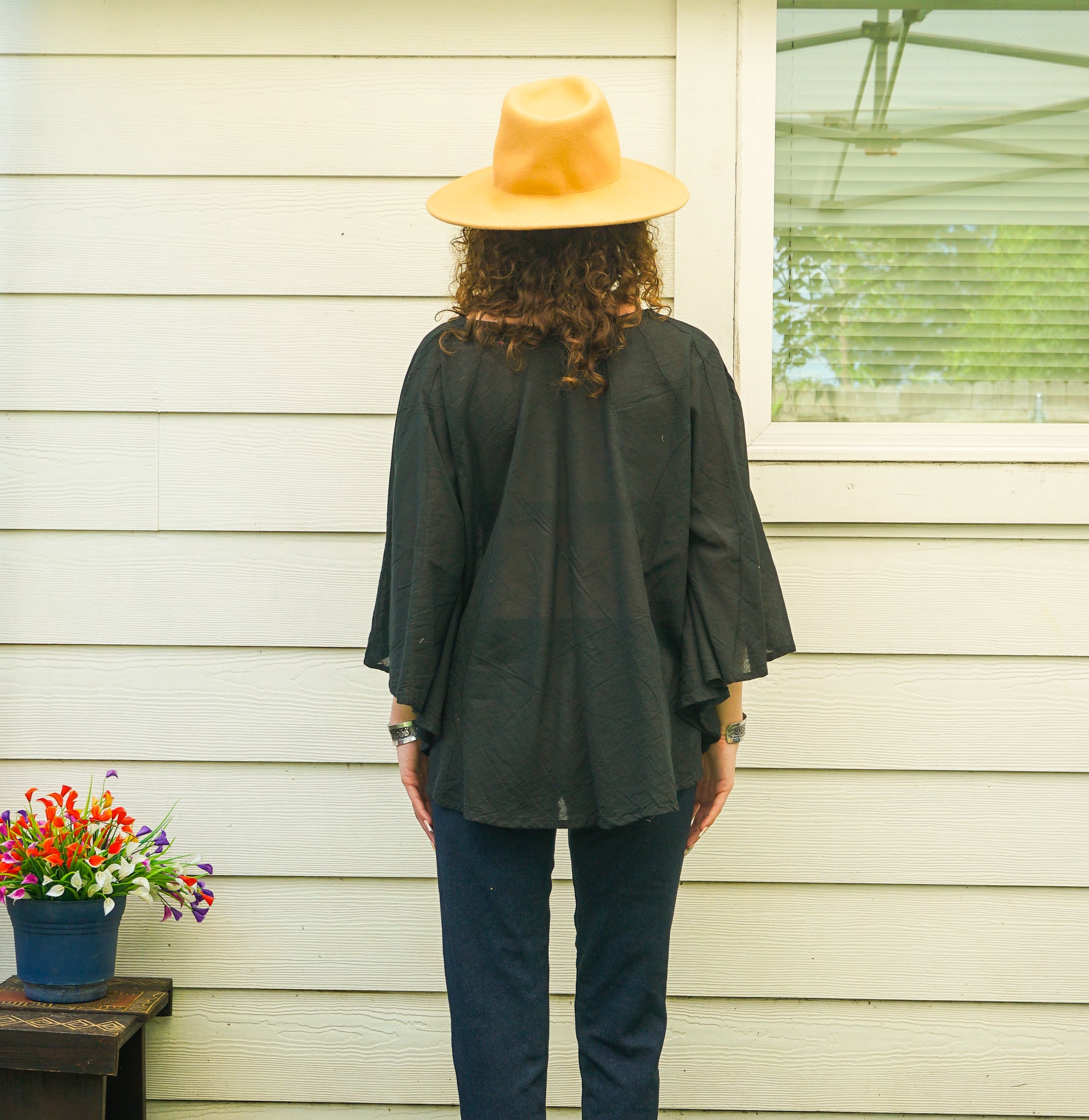 Black Organic Cotton Gauze Boho Blouse – Oversized Butterfly Top