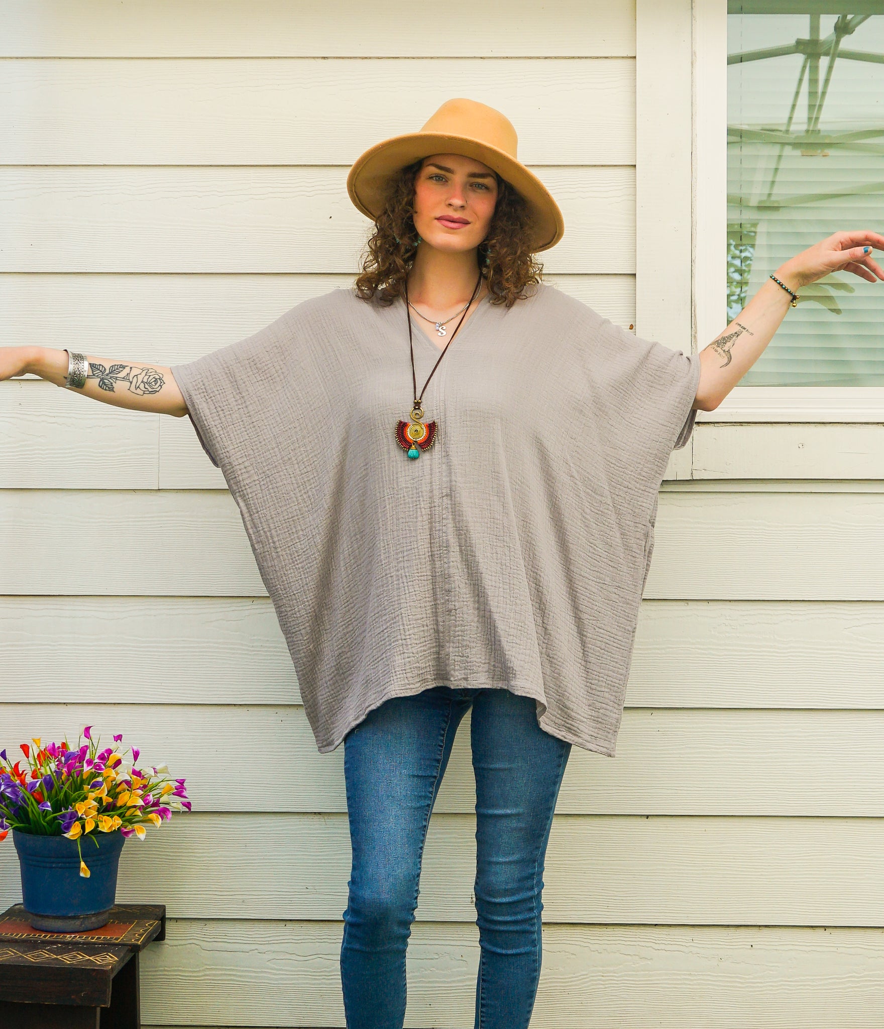 Kaftan Top – Stone Taupe | Organic Double Gauze Cotton
