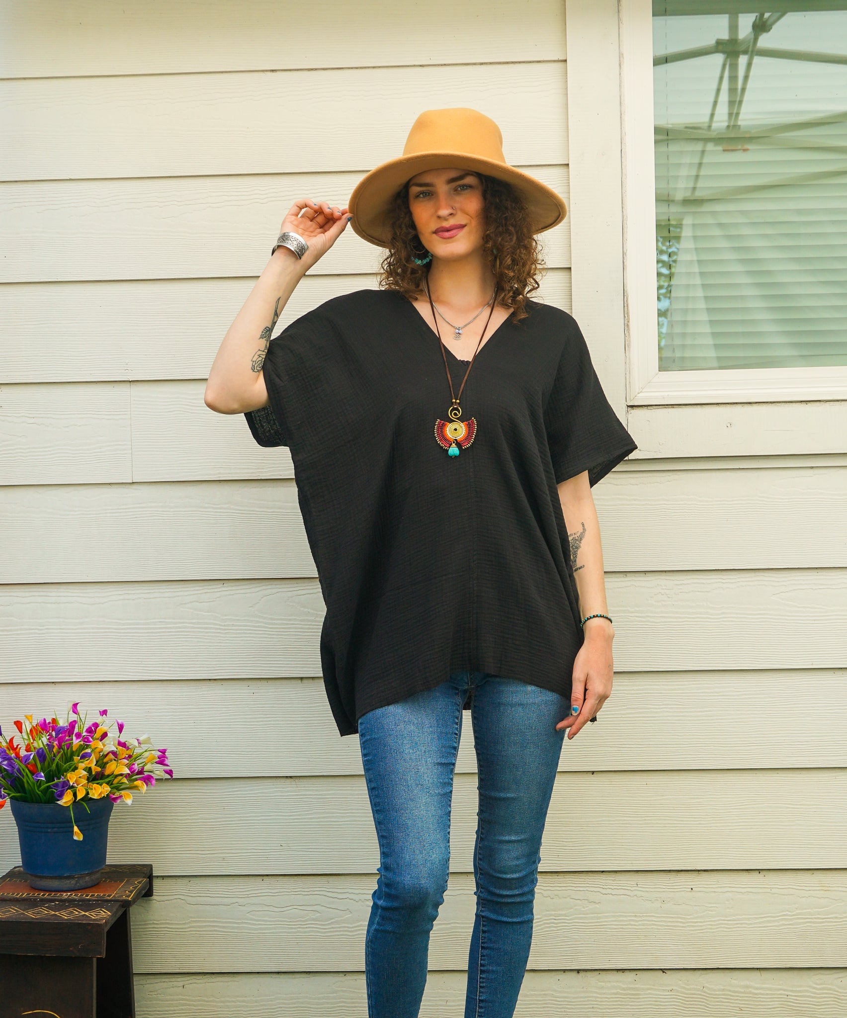 Kaftan Top – Black | Organic Double Gauze Cotton