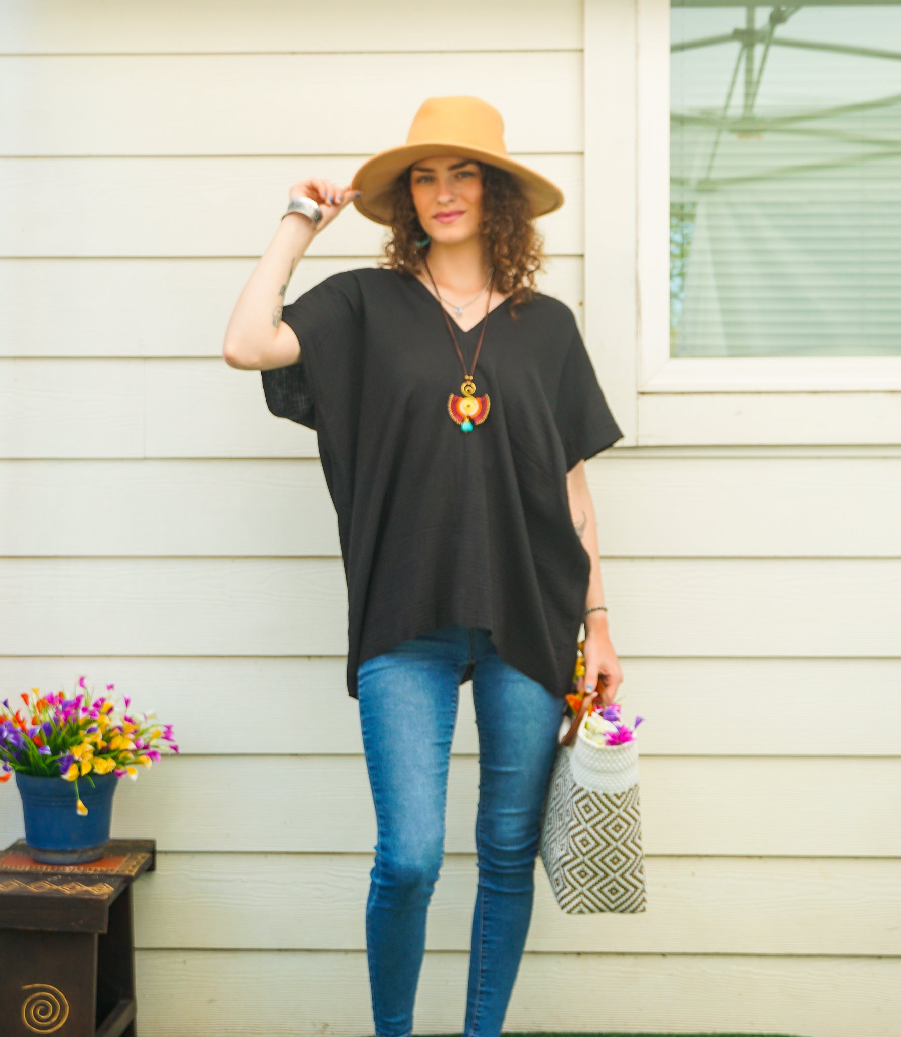 A timeless black essential with a boho touch