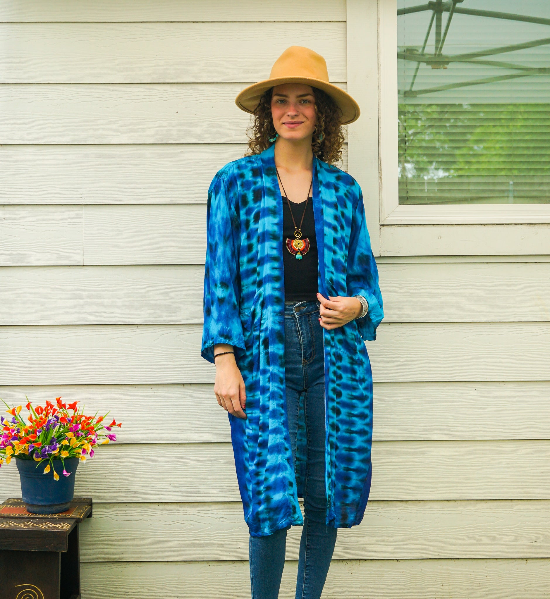 Ocean Drift Tie-Dye Kimono – Hand-Dyed Boho Duster