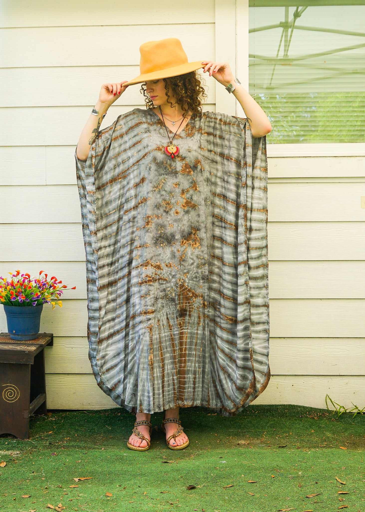 Earth Mist Hand-Dyed Kaftan Dress